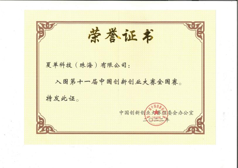 In December, 2022, our company was shortlisted for the National Finals of the 11th China Innovation and Entrepreneurship Competition.