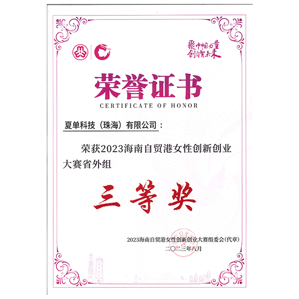 In August, 2023, our company received the third prize in the non-Hainan group of the 2023 Hainan Free Trade Port Women’s Innovation and Entrepreneurship Competition.