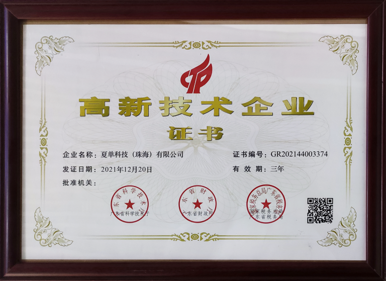 In December, 2021, our company successfully passed the qualification certification of “High-Tech Enterprises”. 2025-10-23
