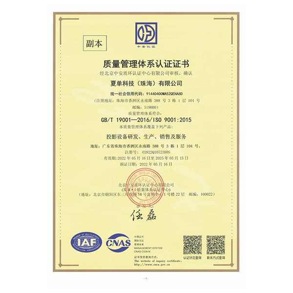 In May, 2022, our company successfully passed the ISO9001 Quality Management System Certification. 2025-10-23