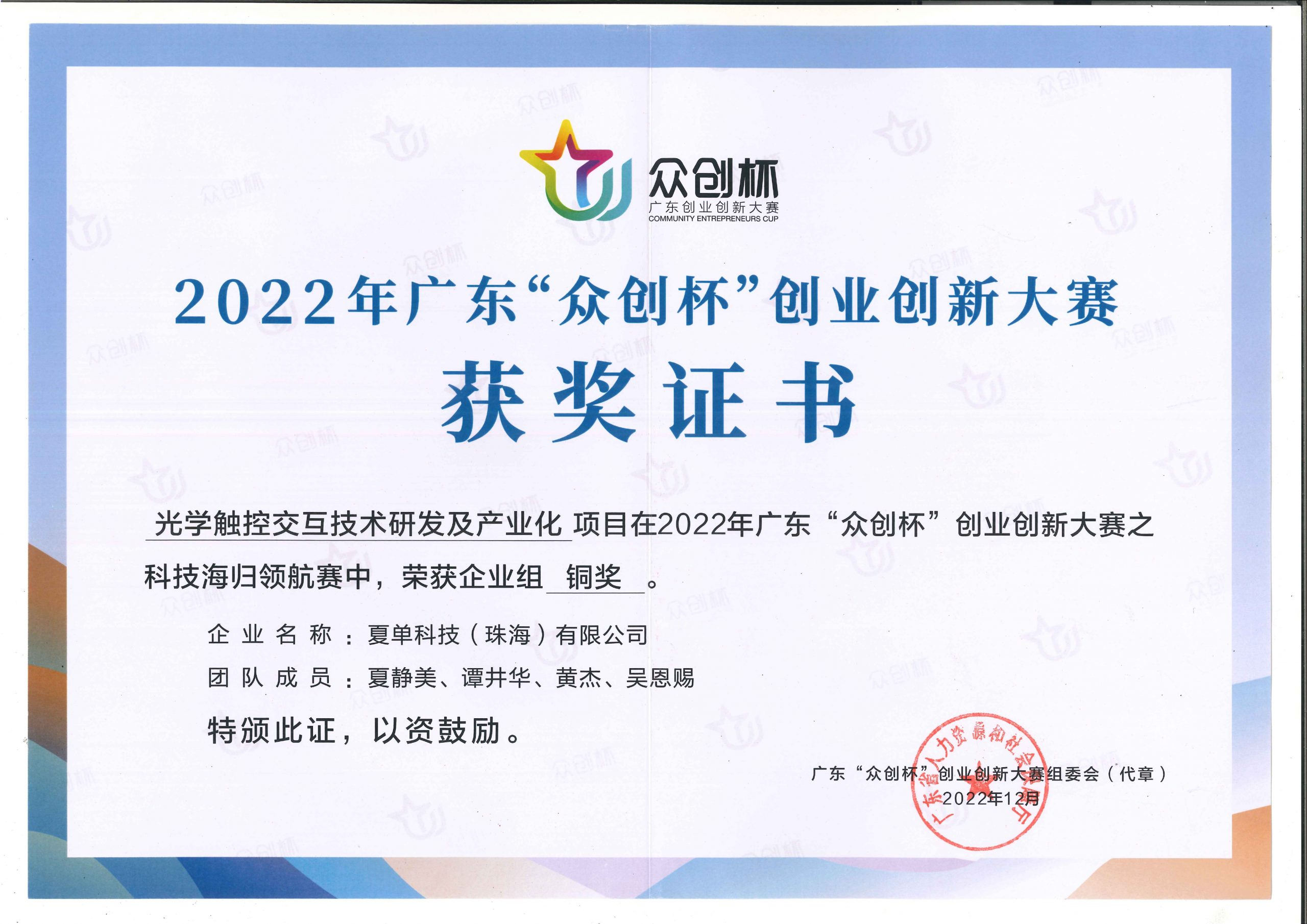 In December, 2022, our company received the third prize in the “Science and Innovation Cup” Innovation and Entrepreneurship Competition in Zhuhai, 2022. 2025-10-23
