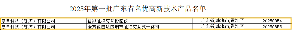 Recently, the Guangdong Association of High-Tech Enterprises officially released the “2025 First Selection List of Guangdong Famous & High-Quality High-Tech Products.” Two independently developed products by Shadow Tech—the “Smart Touch Interactive Projector” and the “Omni-Directional Self-Adaptive Touch Interactive All-in-One Machine”—were successfully selected for this honor, recognized for their leading technological innovation and significant market value.